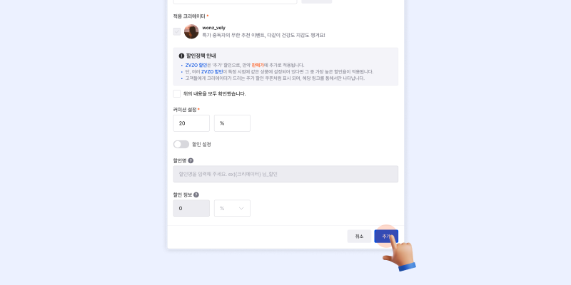 할인율, 기간, 커미션 등 기획전 조건을 클릭 몇 번으로 설정