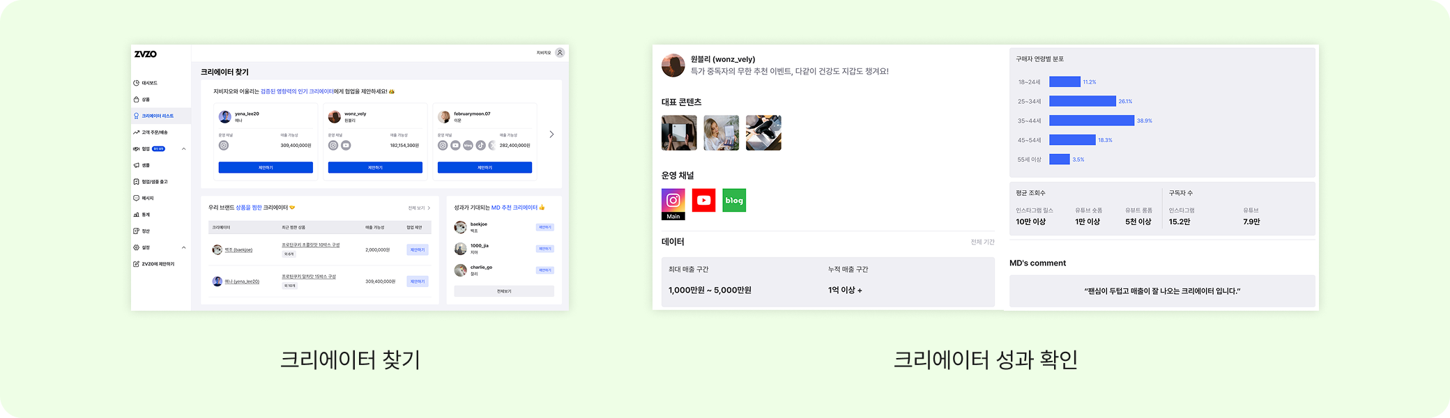 ZVZO에서는 협업 전에 과거의 판매 협업 성과를 확인할 수 있어요.